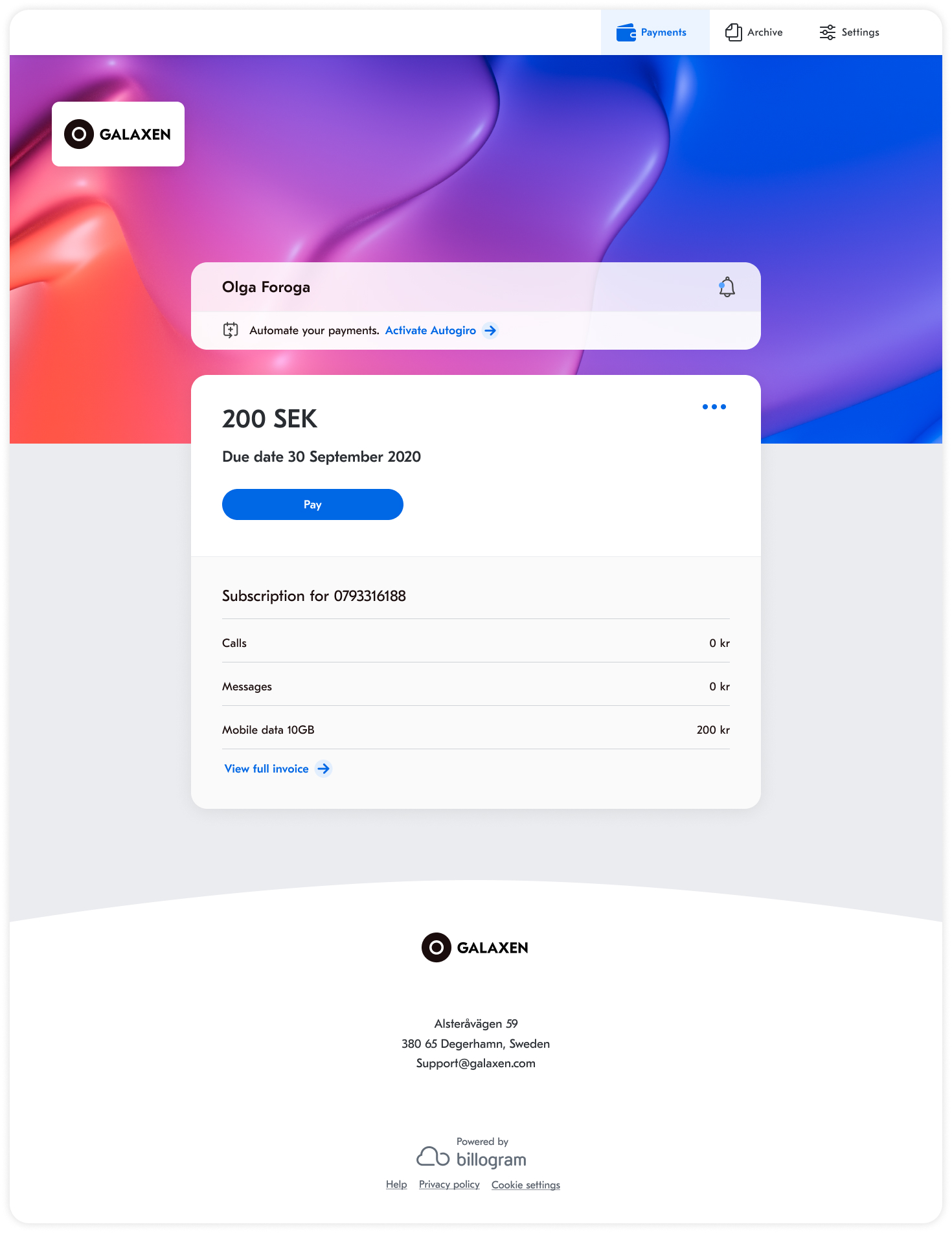 Ein weiteres Highlight ist das größere Header-Bild, das unseren Kund:innen mehr Raum bietet, ihre Markenidentität zu präsentieren und die Rechnungserfahrung individuell zu gestalten. Gleichzeitig sorgt eine neue Kartenansicht dafür, dass ausstehende Rechnungen, geplante Zahlungen und bereits abgeschlossene Transaktionen klar strukturiert und leicht zugänglich sind.